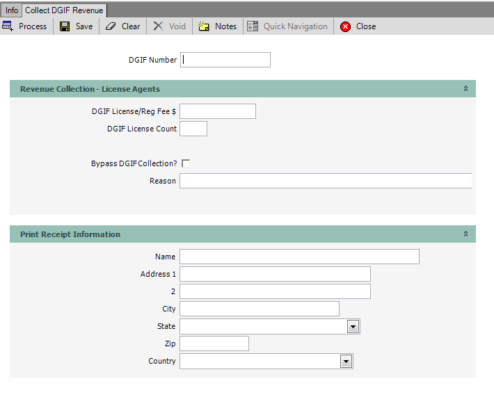 ii.Enter the fee amount from the DGIF Point of Sale process and the number of licenses processed.
