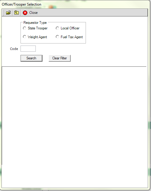 | • | Click the Radio button of the officer/agent in the Requestor Type Selection box. NOTE: If none are selected, mySelect will the search all four types. |