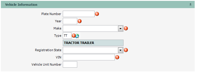 The Vehicle Information bar contains a field for Type and to the right of the field is a description globe. Click this Globe to display a selection list of CTS Vehicle Type codes with their description.